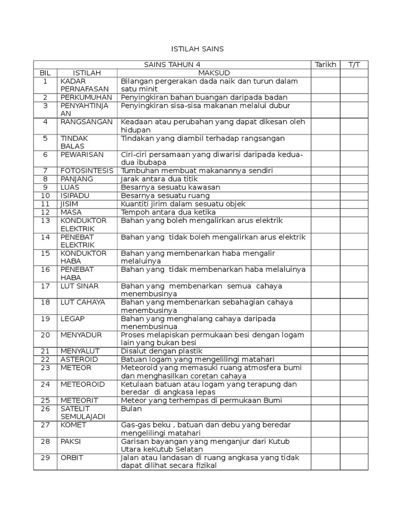 Berikut merupakan contoh definisi istilah sains tahun 4 yang terdapat pada perkongsian kali ini. Sains tahun 4 5 6. Disini cg ingin berkongsi grafik istilah sains tahun 4,5 dan 6 yang dipetik dari laman fb cikgu paan. Learn vocabulary, terms and more with flashcards, games and other study tools. Savesave istilah sains tahun 4 for later.