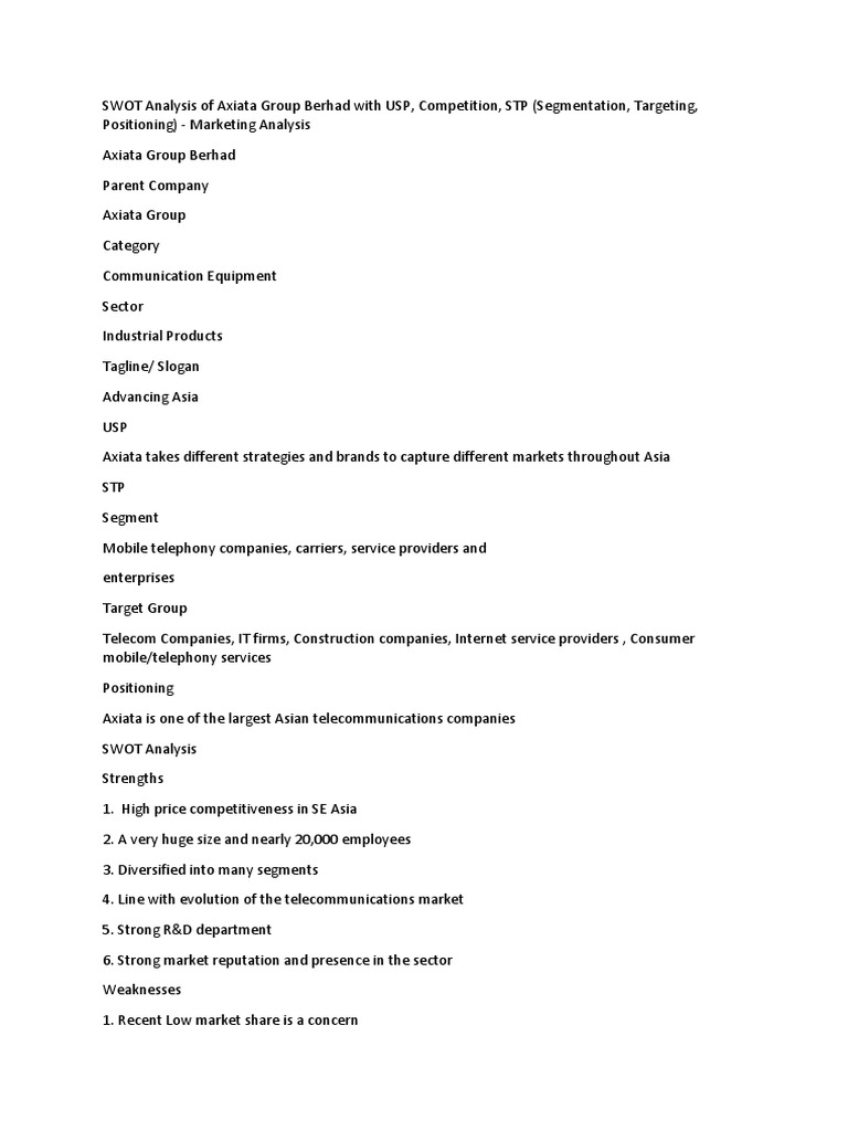 Swot Analysis Of Axiata Group Berhad - See the full list of celcom axiata berhad competitors, plus celcom axiata berhad.. The report analyzes the bank's credit risk over five years from 2013 to 2017. It is a way of evaluating the strengths, weaknesses, opportunities, and threats that affect something. Robiaxiata limited, formerly known as telecom malaysia. Search and upload all types of swot analysis of axiata group berhard projects for mba's on managementparadise.com. Swot analysis of axiata group berhad analyses the brand/company with its strengths, weaknesses, opportunities & threats.